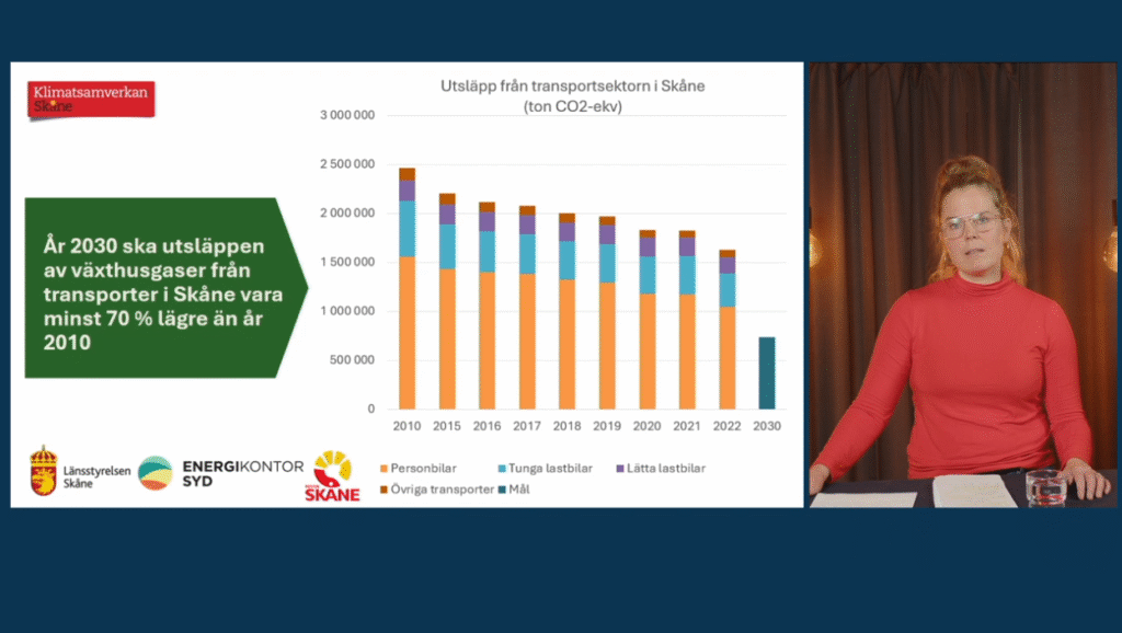 - År 2030 ska utsläppen av växthusgaser från transporter i Skåne vara minst 70 procent lägre än år 2010.
